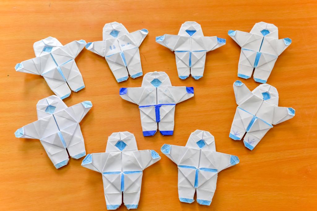 在学校各个核酸检测点,医护人员、志愿者身着白色防护服变身为抗疫“大白”,他们一直奋战在抗疫一线。虽然看不清他们的样子,也不知道他们是谁,但在这场战“疫”中,他们的无私付出却温暖着每一个人。为凝聚学生抗疫力量,表达对抗疫“大白”们的敬意和感谢,3月30日澳门网投举办“以艺抗疫,疫去春来”折纸活动。