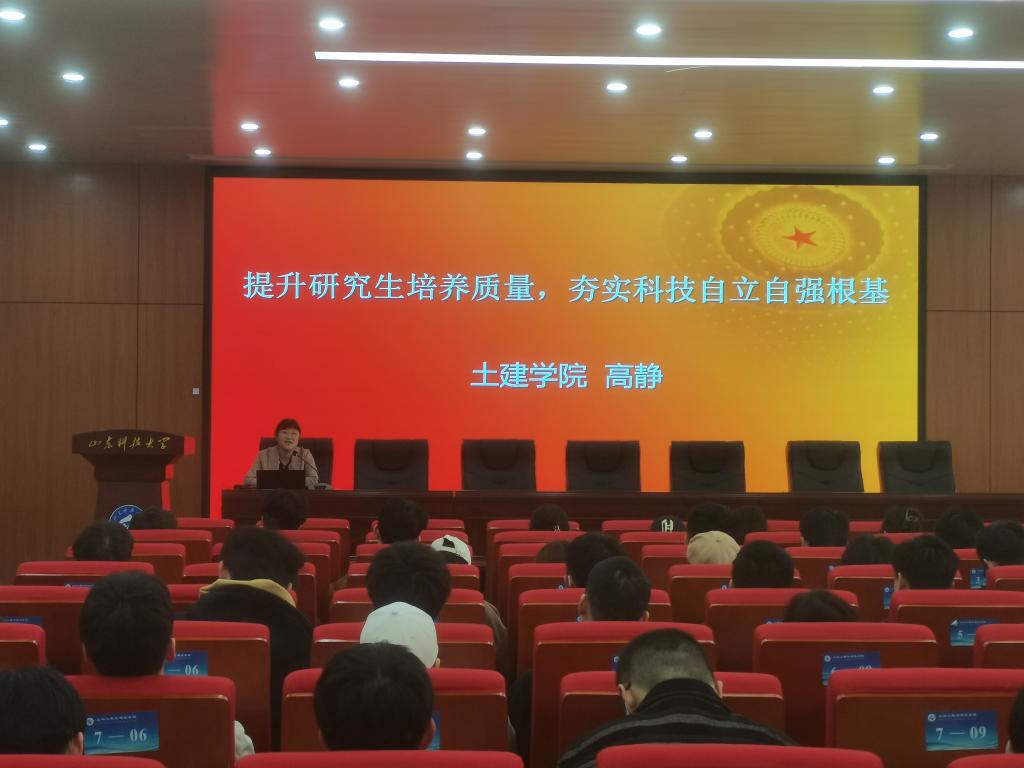 为了进一步营造研究生的学术氛围、增进研究生的综合素养。4月7日上午,澳门网投唯一官网在J15-136举办了“提升研究生培养质量,夯实科技自立自强根基”专题报告会。本次报告会由学院党委副书记、副院长高静主讲,研究生辅导员史卫平主持,2022级全体硕士研究生参加会议。