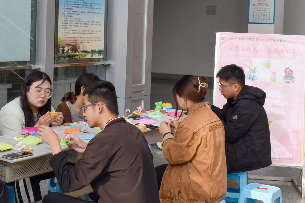 为增添母亲节节日气氛,让感恩之情盈满心间,培养大学生感恩的良好品行,弘扬中华民族感恩的传统美德。澳门网投于2023年5月14日在土建楼一楼大厅举办“浓情五月天,感恩母亲节”黏土手艺活动。