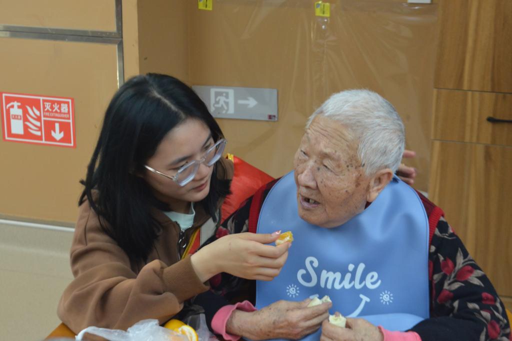志愿者到达敬老院后,第一时间为老人们送去了提前准备好的香蕉、橘子、牛奶等物品。老人们看到志愿者的到来非常开心,跟志愿者们聊起了他们的家庭与生活情况,志愿者在聆听老人们讲述的同时也向老人们介绍了自己在学校的学习、生活情况。志愿者们还提前为老人们准备了一些才艺表演,为老人们献上了《团结就是力量》《好运来》等歌曲,欣赏完志愿者的表演后,老人们的脸上都洋溢着灿烂的笑容。