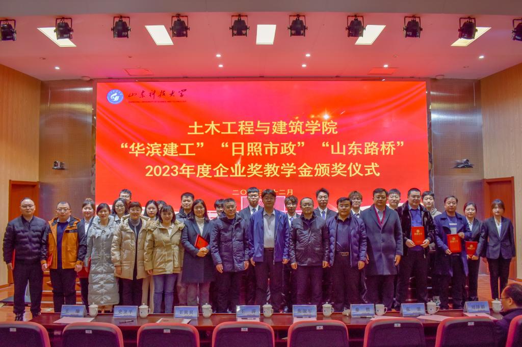 12月22日,澳门网投在J9-144报告厅举行2023年度“华滨建工”“日照市政”“山东路桥”企业奖教学金颁奖仪式。学校学生工作部(处)部(处)长、校团委书记尹立明,日照市政工程集团副总经理袁正君、爆破公司经理焦淑军,山东省路桥集团青岛分公司党总支书记、副总经理曹建军,安全总监王涛,合作发展处副处长王荣超,澳门网投党委书记宋西路、院长王崇革、党委副书记高静、副院长李朋、院长助理秦哲及师生代表参加了颁奖仪式。仪式由高静主持。