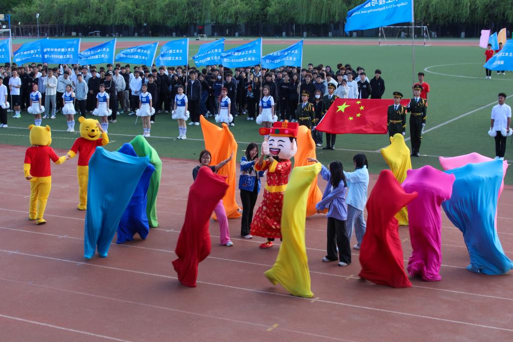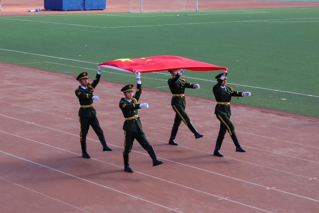 上午8时,伴随着激昂的《运动员进行曲》,在国旗护卫队引领下,学生方队迎着微寒的春风,伴着铿锵的音乐走过主席台,以响亮的口号与精彩的表演充分展现了青年学生朝气蓬勃的精神风貌。
