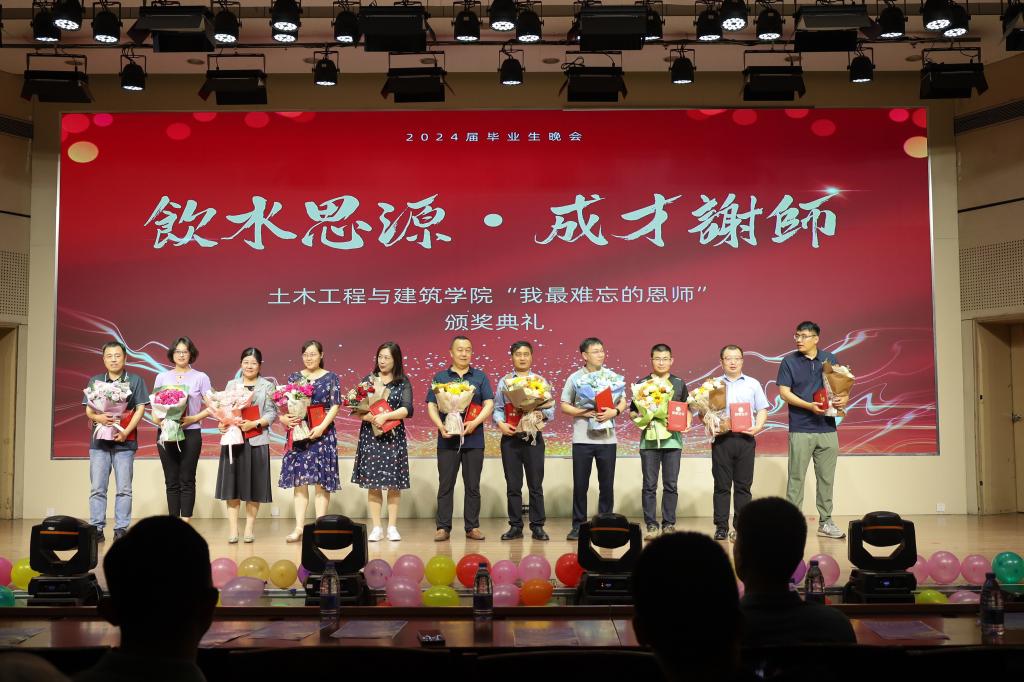 毕业班辅导员王贝贝将对毕业生们的祝福寄托在歌曲《上春山(山科版)》中,希望同学们不忘土建,不负韶华。山晖团队老师们的一首《再见》诉说了对同学们的不舍。吕海峰、刘泽群老师带来的《等待》蕴藏着让毕业生们牢记生逢盛世,肩负重任,定要不负时代,砥砺前行的殷切嘱托。饮水思源,成才谢师,“我最难忘的师恩”颁奖让毕业生们不忘师恩,带着老师们的嘱托奔向远方。整场晚会在群体大合唱的《送别》中拉下帷幕。