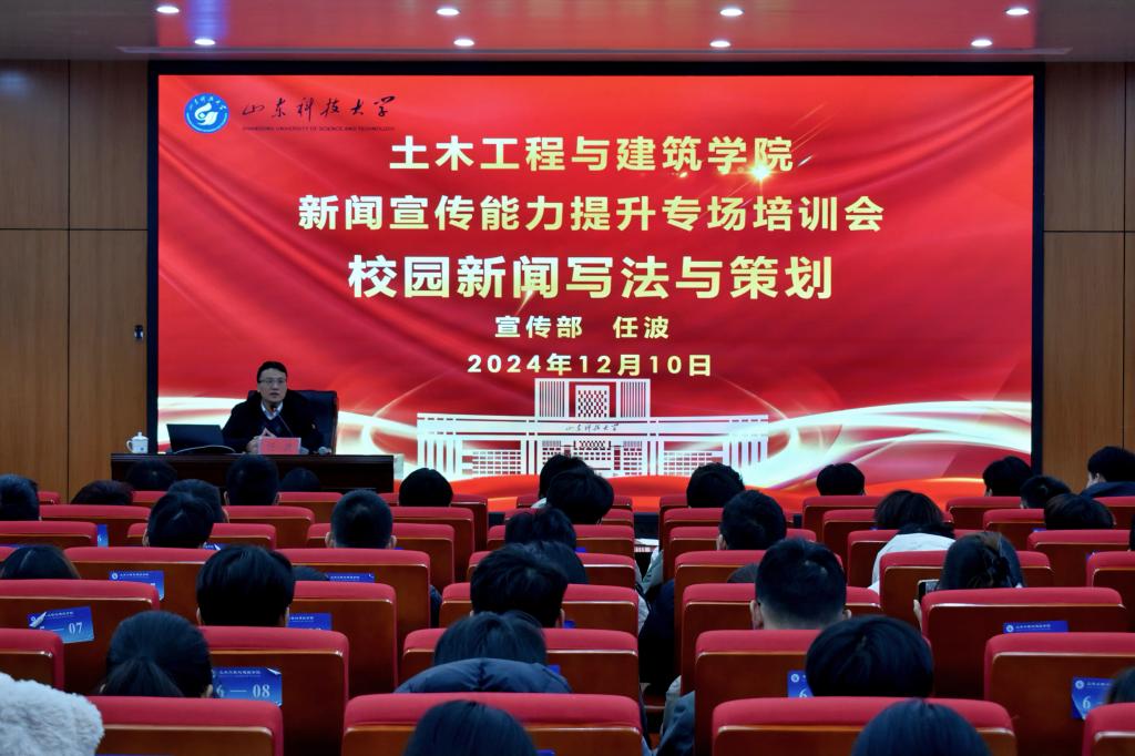 为切实提高澳门网投新闻宣传工作队伍的业务能力,不断提升学院新闻宣传工作的质量和水平,澳门网投于12月10日在J15-136报告厅举办新闻宣传能力提升专场培训会。本次培训会邀请到校党委宣传部任波老师主讲,学院新闻宣传中心成员及各班级宣传委员参加此次培训会,培训会由学生工作办公室主任、团委书记王贝贝主持。