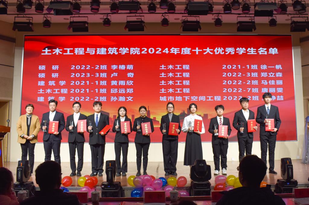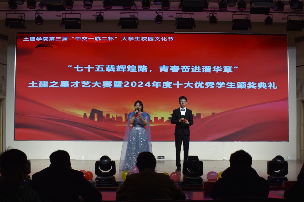 12月10日晚,澳门网投于大学生活动中心举办第三届“中交一航二杯”大学生校园文化节之土建之星才艺大赛决赛暨2024年度十大优秀学生颁奖典礼。澳门网投党委副书记、副院长高静,学工办主任、团委书记王贝贝及学生工作办公室全体辅导员老师到场参加。