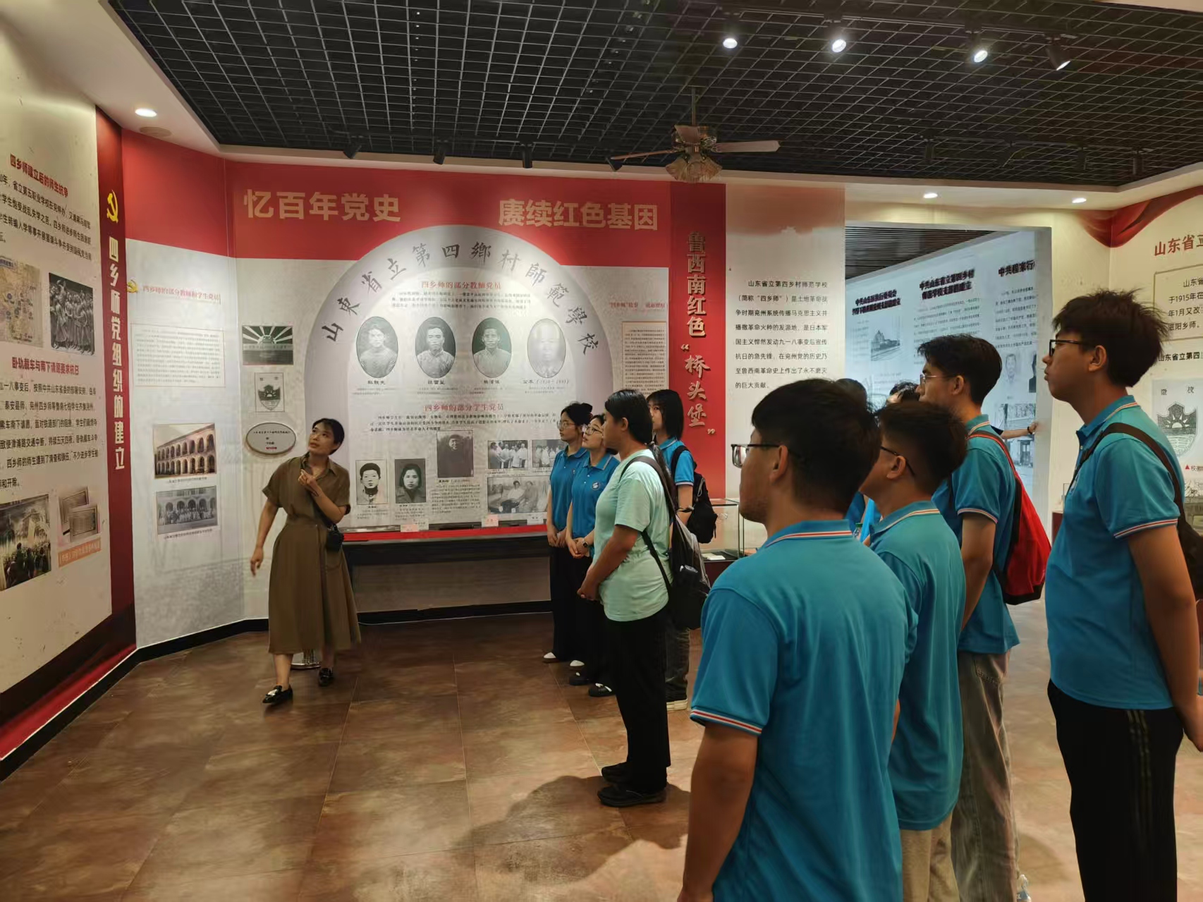 四乡师馆忆烽火,师范星光照丹心。讲师团成员走进四乡师红色教育基地,这里曾是培养革命人才的重要阵地,承载着厚重的红色历史记忆。通过参观基地内的展厅、旧址等,同学们了解了西乡师在党的领导下投身革命、传播火种的峥嵘岁月。鲜活的案例、生动的讲解,大家深刻体悟到早期共产党人坚定的信仰与不屈的奋斗精神,进一步筑牢了理想信念的根基。