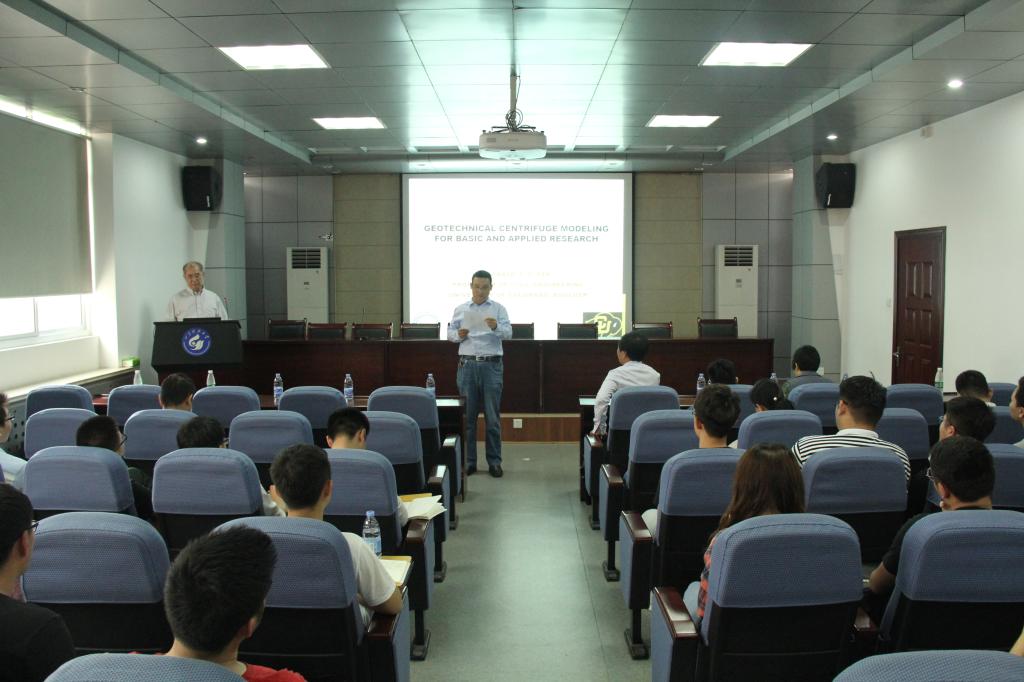 5月22日,澳门网投于J15-219开展了名家讲坛第25期,邀请到美国科罗拉多大学Ronald Pak教授以《Geotechnical Centrifuge Modeling for Basic and Applied Research》为题为学院师生作报告。澳门网投副院长张宪堂主持了本期讲坛。