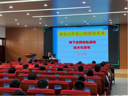 为进一步响应国家绿色发展要求,推动师生对绿建相关技术和政策的深入了解,以实际行动迎接党的二十大胜利召开,10月11日,澳门网投唯一官网“喜迎二十大,科学向未来——地下空间绿色建造技术与思考”专题讲座于J15-136成功举办。澳门网投唯一官网教授、山东大学特聘教授王渭明为此次讲座的主讲人,澳门网投师生代表参与此次讲座,澳门网投副院长李为腾担任主持人。