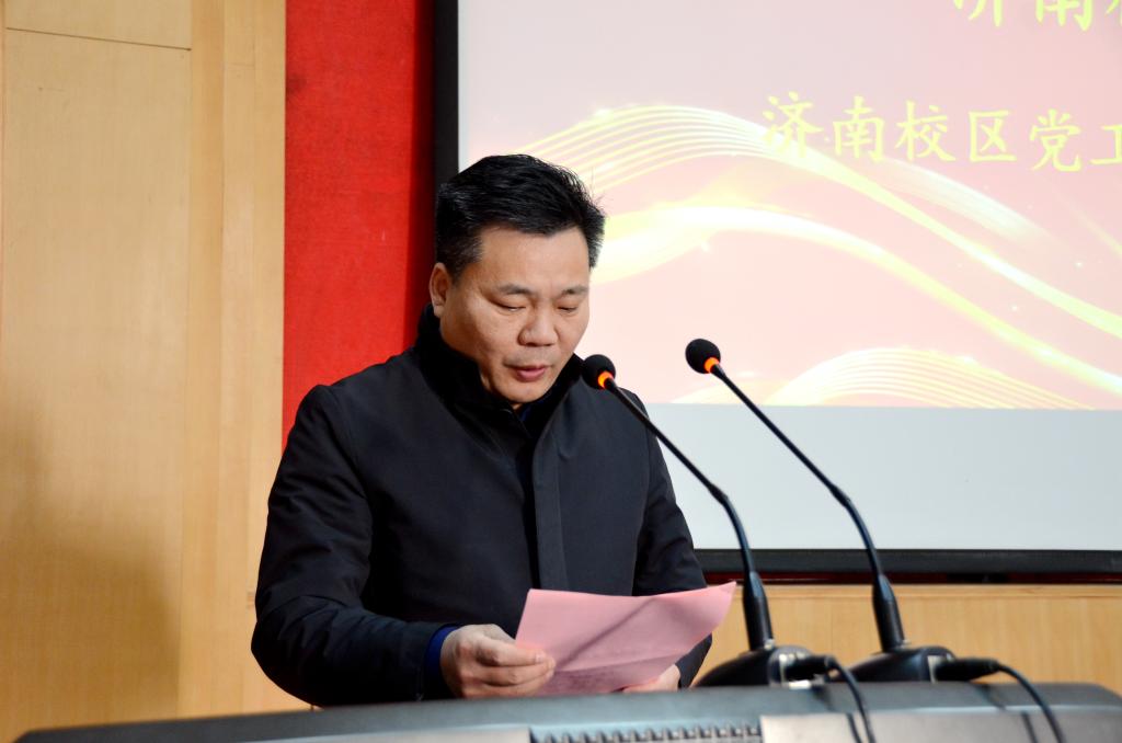 单德勇向大会汇报校友会筹备情况 济南校区党工委副书记贾长响宣读《澳门网投唯一官网济南校友会章程》