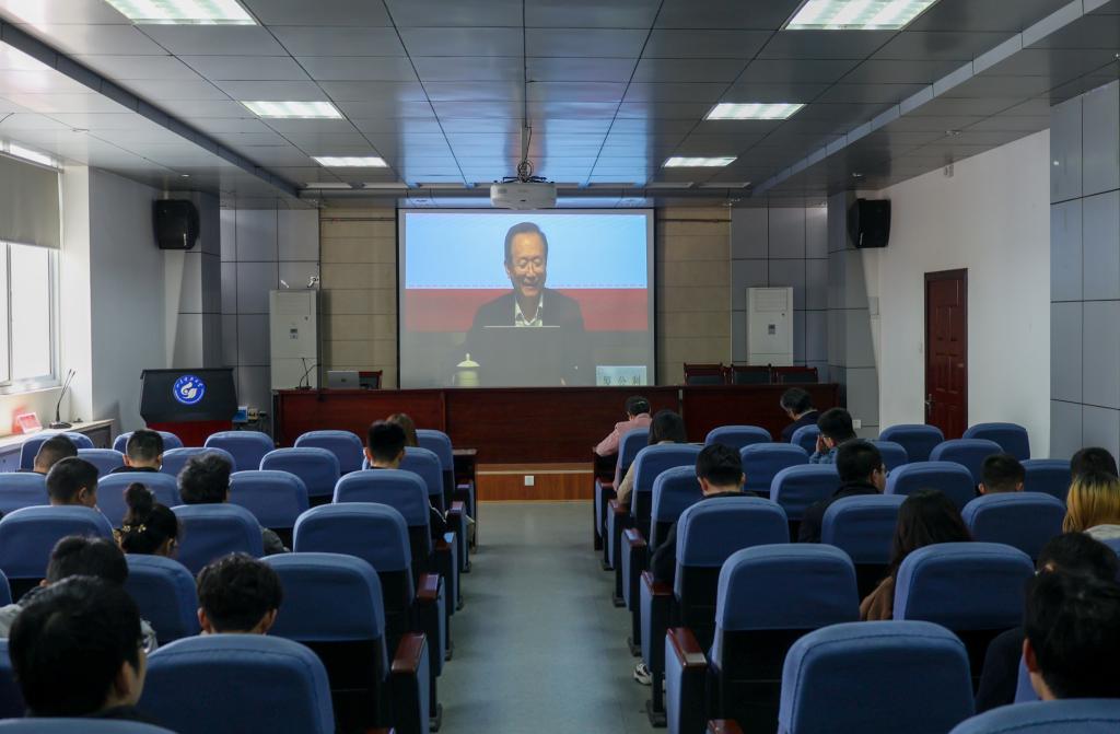 为了深入贯彻落实习近平总书记关于深入学习党史、新中国史、改革开放史、社会主义发展史的重要指示精神,深化思想政治理论课改革创新,以实际行动迎接建党100周年,4月15日14时,澳门网投唯一官网党委书记罗公利于逸夫讲堂以“重温百年党史,见证青岛百年”为题,为青年学生讲授百年党史。澳门网投在J15-219设立分会场,澳门网投党委副书记兼副院长高静、学生工作办公室全体专兼职辅导员及学生代表观看直播、参与线上学习。