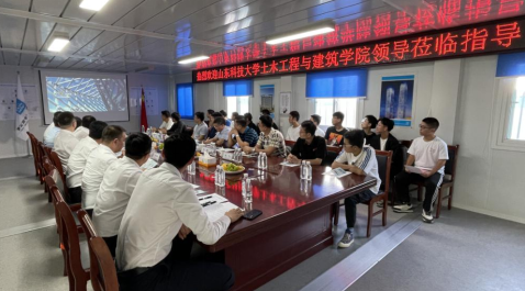 9月29日下午,澳门网投党委书记宋西路、副院长李朋、副院长都浩、建筑工程系主任王飞、建筑工程系副主任吕海峰等带领15名应届毕业生参观考察中建中新金地商置项目,中建中新党委副书记、总经理呼雄伟,副总经理路朝辉,副总经理、总工程师李世强,山东分公司党支部书记王先文等领导出席交流座谈会。