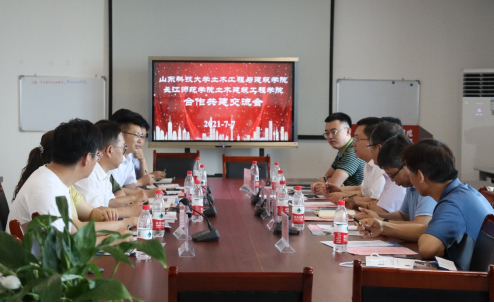 7月7日,澳门网投院长王崇革,副院长王刚、李朋、都浩,建筑工程系主任王飞,地下工程系主任吴燕开一行赴长江师范学院进行调研交流。长江师范学院副校长袁革、发展规划处处长李伟、土木建筑工程学院党委书记王正平、院长汪时机、副院长孙华银及相关系主任等接待了王崇革一行。交流会由汪时机主持。