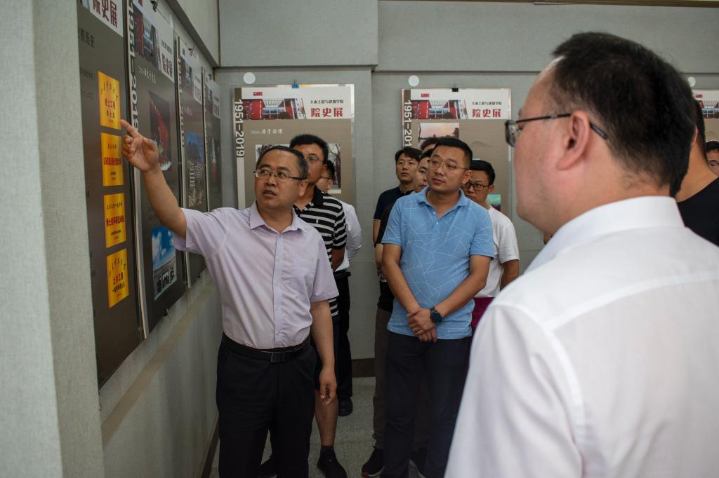 会后,领导老师及校友们于土建楼西门合影留念,王崇革带领校友参观院史馆。