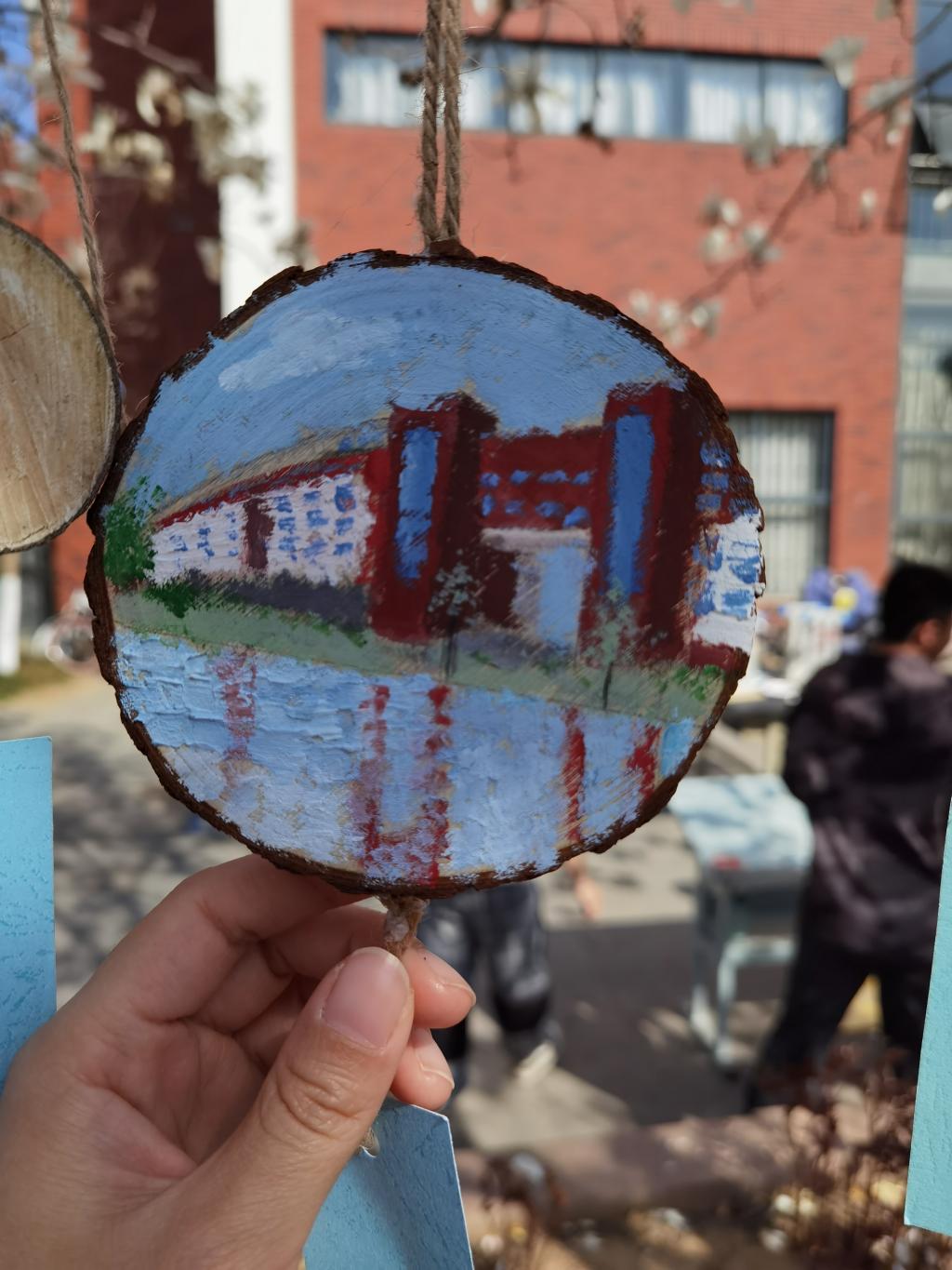 学生们围绕“科大”这个中心,挖掘校园之美,在原木片上手绘作品,并写下对学校的祝福。墨水荷香、校园春色、科大金秋、水中银杏等跃然木上,励志坊、1号教学楼等纷纷成为笔下美景。学院新闻宣传中心部长陈涵说:“同学们对活动的喜爱程度超过我们的预期,不少路过的、之前没有报名的同学也都过来咨询是否可以加入。原本计划2个小时的活动,天快黑了才结束。”活动中,学工办辅导员们也纷纷加入,手绘出印象科大。